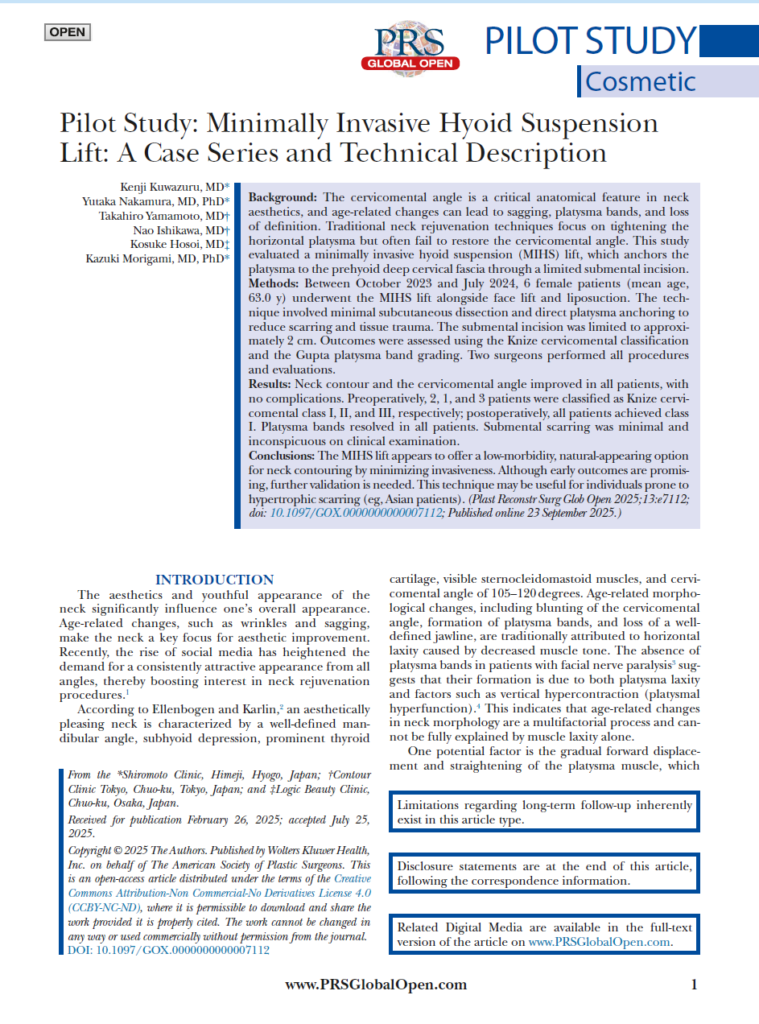 この度、ロジックビューティークリニックの桒水流医師による「ペリカン手術」 が、世界的に権威ある形成外科専門誌 PRS Global Open に掲載されました。