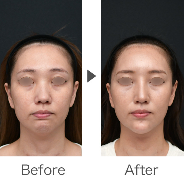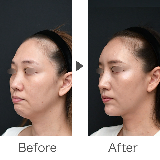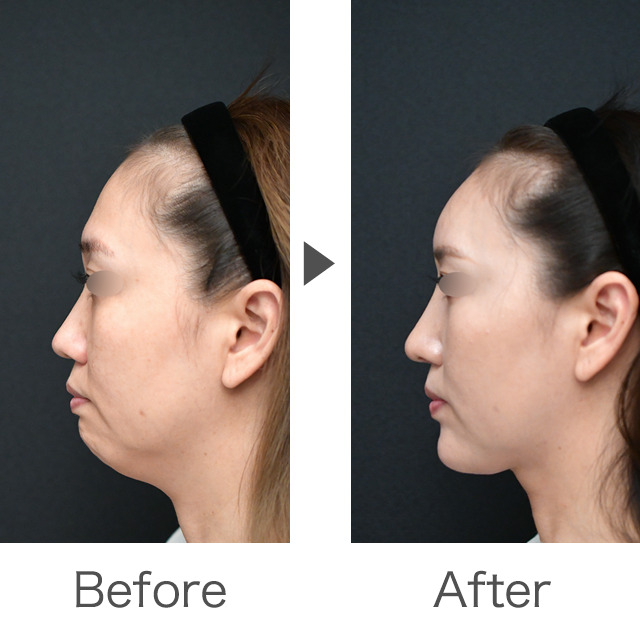 また、今回同時に行ったペリカン手術と顎下の脂肪吸引で、顎下のもたつきが改善され、輪郭がはっきりとしシャープな印象に◎